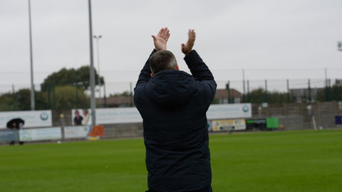 Scott Rogers reacts to today's 2 - 0 win against Poole Town in the Emirates FA Cup Third Qualifying Round.